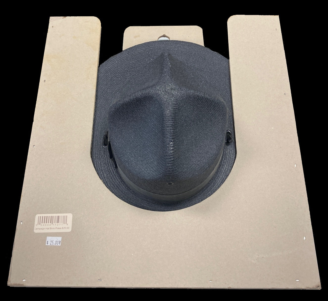 Sturdy cardboard hat press designed to keep your campaign hat brim flat. Also includes a hole for vertical storage/hanging.