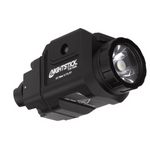 The TCM-550XL Compact Tactical Weapon-Mounted Light uses a super-bright LED rated at 550 lumens working in conjunction with a precision-engineered total internal reflection (TIR) lens to create a bright white beam of light rated at 136 meters. This weapon light features completely ambidextrous and intuitive rear-facing toggle switches on each side of the light to operate the momentary-on and constant-on lighting modes. The housing of the TCM-550XL is constructed from aircraft-grade 6061-T6 Aluminum with a polymer rear housing. Includes four handgun-specific modular rail inserts (pre-configured with C1 insert for Glock pistols), two spare Allen screws, Allen wrench, and one CR123 Lithium battery.